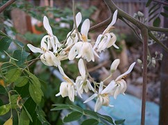 發現它還真是好種及生長迅速,翠綠的葉片有點像鳳凰木,而且辣木的生長還真奇蹟,柳川邊的辣木每次颱風都被吹斷,但是,總會再冒出新枝枒,而霧峰那棵地植的辣木則已經高大且開花,最神奇的是連工作室前種於空心磚的這棵辣木都已近一層樓高,而且最近不斷開出白色花朵,挺素雅的,鄰居也讚嘆不已!不過,它到冬季就會葉黃掉落,變得光禿稀疏,還記得辣木熱好像也是在冬季就給退燒了,其實有許多的香藥草植物也曾若此地被包裝、哄抬,但退流行後就被遺棄,或是從寶石變成垃圾,真不知該肯定這些有心人可以讓這些原本平凡的植物變得珍稀可貴,還是該叨念他們如此誇大效果來賺錢﹖不過,雖然辣木不再是流行的養生炒作材料,但是,我覺得現在的它,其實挺美的!