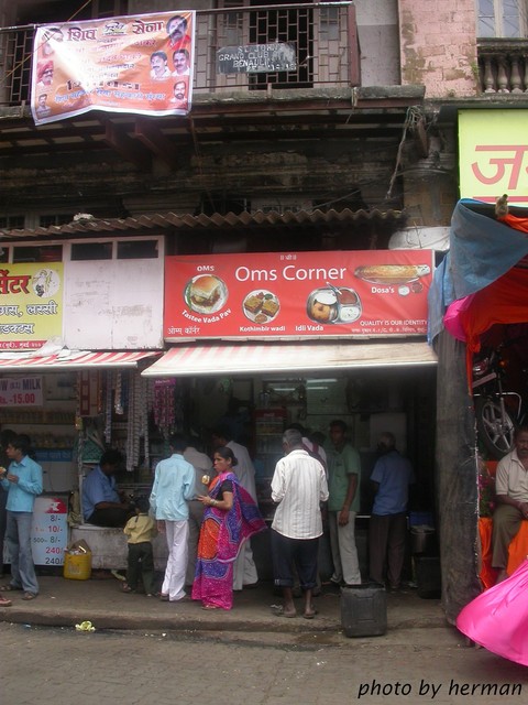這是孟買街頭常見的Vada Pav專賣店,許多人站著就直接解決。