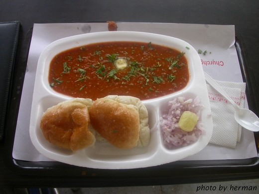 從賣Pav的現場看最準,最真切,Pav從我們理解的角度看,可以解釋成「餐包」,事實上也是如此。Vada Pav看起來有點類似漢堡,但它的內容卻不像漢堡那麼豐富,它充其量就是個餐包夾個肉餡而已。Pav Bhaji則是更常見的「簡餐」,兩個小小的餐包,加上肉醬,檸檬和洋蔥片,放在盤子上一起端過來,就是一頓飯了。