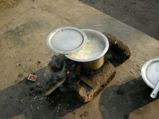 今天早上很早就到工廠,守衛才剛在煮飯,我們正好看到他怎麼做。