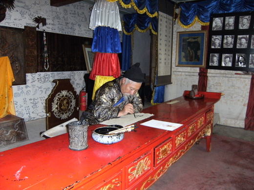 我們以最近的距離親歷了東巴智者將古文明認真呈現的經過,在時間空間交錯下,眼前的東巴智者彷彿像古代的王爺一般威嚴端正,心裡充滿了對他的景仰與尊敬,敬他保護延續東巴文字的美,也豐富了我們這次的大陸之旅。