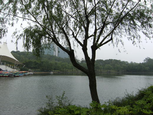 曲橋、柳樹、湖泊與沼澤,看得到遊船、垂釣者。