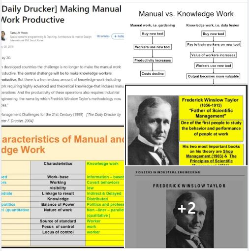 5/20/2023 再補充杜拉克的「管理學實務」。今天的題目是「20 May Making Manual Work Productive」,直譯「使體力勞動者富有成效」,副標題「Knowledge work includes manual operations