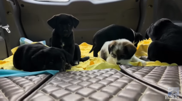 五隻小奶狗第一次搭車都吐了