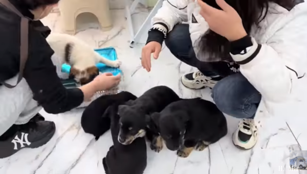 其他四隻都是黑色帶點白色的小狗