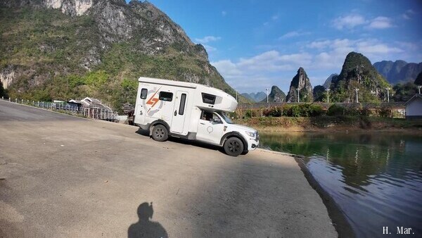一人一狗房车自驾广西百色,夜里露营小山村,钓个鱼是真费劲啊!
