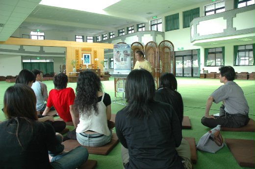 96年5月4日下午的倓虛大師紀念堂,不僅有莊嚴的佛教殿堂,還有尤榮坤老師用生命點滴換來的社會新鮮人手冊,尤老師告訴我們:「豐富而周全的準備,不一定能使你找到工作。」「量力而為」、「不害臊於提問」是學習的基礎,並說明「很多是不如自己所想」、「學以致用為佳,學非所用亦優,取決於豐厚的實力。」接著以「其實你不懂我的心」一曲,道出多數人的心理狀態,以音樂激發內在的感受與省思。