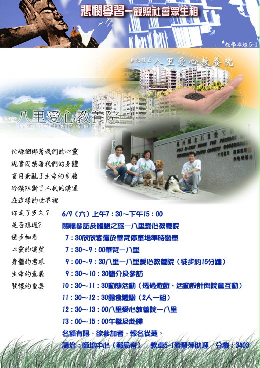 9:00~9:30八里-八里愛心教養院(徒步約15分鐘)