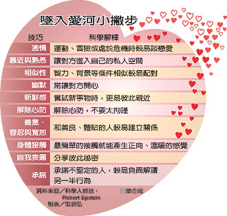 情人節快到了,單身的你,是不是好想談戀愛?科學研究證明,激情、幽默、新鮮感、解除心防、自我表露、承諾等十種技巧,都有助快速墜入情網,與另一半萌生愛苗。