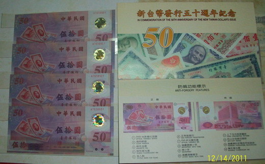 可是五十元的塑膠紀念鈔票,因為很喜歡,管他實際不實際,我留它幾張下來做紀念,偶爾拿出來欣賞時,總是覺得很開心。絕版的貨幣,也是唯一使用塑膠材質的貨幣,對於實際來說它只有五十元的價值,可是在我心目中它的價值無限。