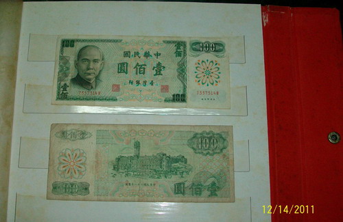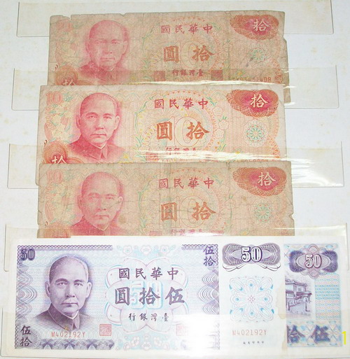 內人的外婆過世的時候,留給岳母一只銀手鐲和現金三百三十元,岳母又將這些遺物送給內人。現金三百三十元是兩張百元鈔票,兩張五十元鈔票還有三張十元的鈔票,那些都是民國六、七十時年發行的鈔票,是我國中時期使用的鈔票,如今在市面上已經不流通了。