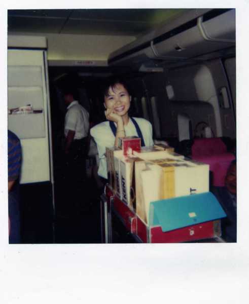 (照片22:這就是販賣煙酒的情形,最資淺的空服員主賣,次資淺的陪賣,同時幫忙她照顧車上的東西。)