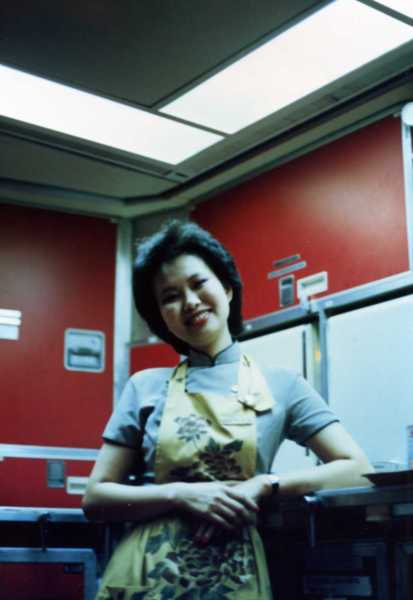 而且從前的飛機並不像現在的新型大客機,有專門給空服員輪休的地方。我們那時是只能找飛機上的空位休息,但因那時飛機班班滿,所以大部分的時間,空服員都是在自己的位子上輪休。看倌,您從前難道沒看過可憐的空服員,坐在自己的jumpseat上,身上披著一件藍色的毛毯,抱著一個小小的枕頭,然後頭靠在機門上休息?