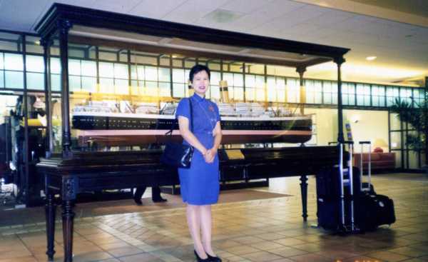 (照片40:這是我們在荷蘭旅館的大廳所攝,我身後的是豪華客輪的模型船。)