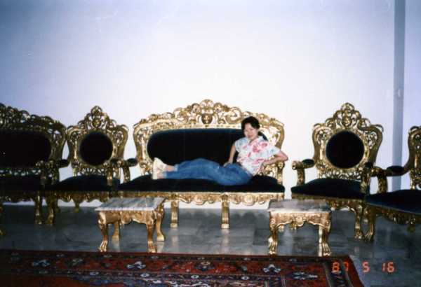 (照片42:這張照片是在沙烏地阿拉伯的旅館拍攝的,這種金光閃閃的家具是中東人最愛的型式,旅館裡幾乎都是這種家具,我當然不能放過,便拍下照片留念。)