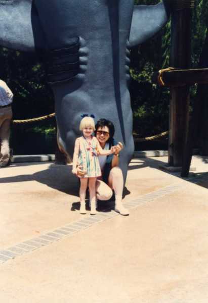 (照片62:還是我在環球影城的照片,當時看到這個天生白金髮的小女生,我驚為天人,立刻厚著臉皮向孩子的媽媽請求合照,小女孩大方地和我在電影大白鯊裡的道具鯊前合影,可愛吧?)