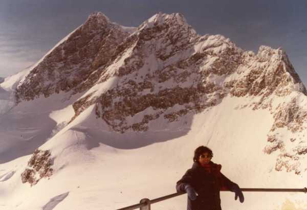 (照片73:我和少女峰,不知為何在金黃色的陽光之下,照片居然呈現偏黃的現象。)