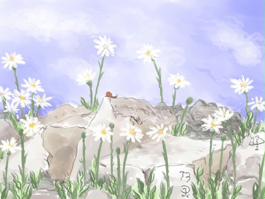 小蜗牛静静爬过。只剩下微微的和风,戚戚的夏虫。