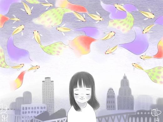 彩虹魚就是她的色彩,她给自己的天地上色。