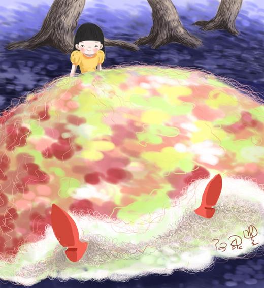 但在村口的那爿小林子里,她是童話仙境的愛麗絲。