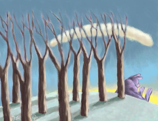 兀的枝丫困住一片孤雲。