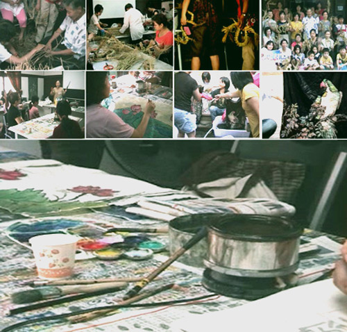 今年上過的課還有蠟染,藝師邱麗卿來自桃園縣大溪鎮;她曾經營蠟染服飾店,以棉、麻或蠶絲等天然材布,在素面上繪畫或印染,希望大家把藝術穿上街。少女時代她曾經在《桃園青年》發表過一些抒情散文,以後卻在台北工專學化工。但是,她自小常就代表學校去參加繪畫比賽,並且奪冠;終於還是走上藝術創作的路。