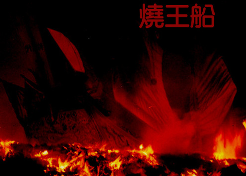 這艘船上坐著三尊真人大小身袍戴冠的神像,居中坐著白臉黑鬚容貌端莊的吳大千歲,是這一年輪值的瘟神;左邊坐著輪值上一次醮祭的瘟神耿二千歲,黑臉黑鬚怒面猙獰;右邊坐著輪值下一次醮祭的瘟神何三千歲,紅臉黑鬚貌顯嚴威。瓦歷斯.諾幹教授說,這些瘟神其實是鬼喔,瘟,是急症傳染病,包括鼠疫、霍亂、斑疹傷寒和瘧疾等等;台灣高溫潮濕,最容易發生瘟病,古時候移民台灣的先民--啞,你們--他們--啞,漢民族的祖先,就多有枉死於這些瘟病的;這當是厲鬼,所以這種信仰是一種原始素樸的靈魂崇拜。台灣人信鬼,到處拜鬼--啞,磕磕拜,鬼就有權力了,就被想成可能有管束其他小鬼怪的力量了;這樣,集體大量的瘟死厲鬼,就被以各各姓氏為代表信仰為瘟神。燒王船是把船放流海裡燒,就是從最原始的瘟病死屍水葬,演變成瘟神帶走死亡的儀式。當瘟神變成台灣祖先漁民的信仰,也就變成了保護航海平安、魚獲豐收的海神,和媽祖一起受敬祀。既然瘟神可以驅逐死亡,在古台灣這種瘴厲地獄,也取得了醫病的神格,也就和保生大帝一起被供奉。擁有這麼多神格,瘟神就高升為保境安民的代天巡狩,可以防禦疫鬼、妖魔和外敵侵襲。啞,你們--他們--啞,漢民族很會搞喔,這發明就可以更加把藍軍妖魔化,也可以拿來打共匪咯,吼吼吼。