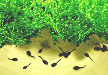 窗邊一個養有許多植物的圓形玻璃缸裡,曾經有十一隻蝌蚪;我還記得我是如何熱切的對它們做各種探索。用手探進缸裡去觸摸到處蹦跳的蝌蚪,或讓它們在手心中滑行在手指間滑落,是非常快樂美妙的事。有一天,有一較具勃勃野心的傢伙跳出玻璃缸對它的拘限,跌落地板;我在那裡找到它已懨懨一息,僅有的生命跡象只是尾巴的輕微蠕動。但是,一把牠放回原來的自然環境,它就向水底猛衝,活潑敏捷,快快樂樂的游來游去。它曾經跳躍過,看了偉大的世界,然後滿足的待在小蒼蘭樹茂密枝葉下的可愛溫室,直到它變成一隻尊貴的青蛙。後來,它住在花園盡頭一個草木茂密環繞的水塘;夏日的夜晚裡,我常能聽到它以古雅、奇特、有趣的聲音,歡唱情歌。
