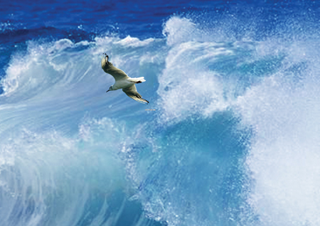在這海水的恐怖洗禮後,我想像穿著泳衣坐在大礁石上去感受前撲後擁的猛烈奔波和撞擊,以及高高躍起而當頭潑灑我全身的飛沫,會有非常樂趣。粗壯的浪潮一再的重摔在岸上,我能感覺小卵石嘎嘎作響;大氣也隨著海潮的持續擠壓發出一陣陣悸動,整片海岸像是忍受著被毀滅性攻擊的折磨。在海岸上摔裂的碎浪總是會突然下降,俯衝回去,緊緊互相抓攫,再次聚合以準備更強大的跳躍和衝擊;我就緊緊抓住礁石,怒潮的莽撞奔流、漫天水花以及咆哮和喧嘩,讓我緊張,也讓我沉迷得神魂顛倒!