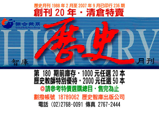 《歷史月刊》整理歷史和知識,不像一般雜誌多有過期失效的問題;為發行20週年與讀者同樂,將第180期前的庫存特價優惠讀者。