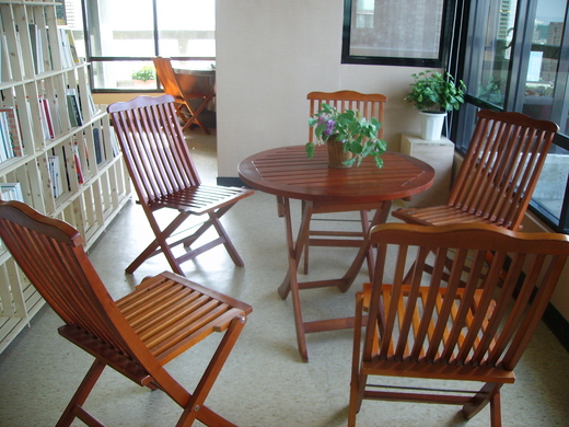 除了貼心的閱讀服務配備,還有運動健身區〈可以踩腳踏車與打室內簡易高爾夫〉、健康檢測區〈量脈搏與血壓〉、棋奕區〈備有西洋棋、圍棋、象棋、數獨等〉、休閒區、茶水區、作品展示區。