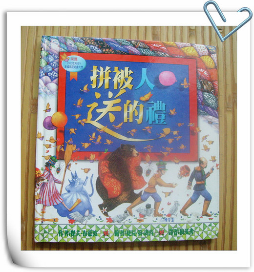 《拼被人送的禮》由青林國際在2000年初版,離現在已10年了,不管是第一次閱讀還是多年後再次閱讀,總是會從書的封面引發豐富的視覺享受。就這樣,想翻開書,細細的讀完每頁傳遞的精彩故事,忍不住再度回頭欣賞充斥書頁繽紛、飽滿的畫面。在過程中,啟動我全身的知覺,獲得各種美好與溫暖的滋味,滿溢沉浸歡樂的情緒裡……。