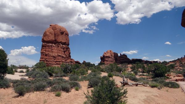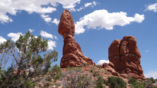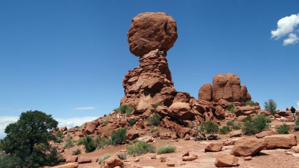 世界上有許多著名的平衡石(Balanced rock)吸引遊客,前往拱門國家公園的路旁,也有一個地標性平衡石,高39公尺,由於它的外型很男性化,給人的感覺就是「十分雄偉」。平衡石重達3577噸,分成三個部分:頭部、頸部和軀體,頂端核桃狀的頭部有16.75公尺高,看起來搖搖欲墜,但它卻已屹立千百萬年。