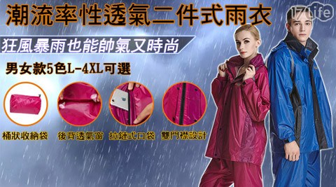 17life團購熱銷推薦→潮流率性透氣二件式雨衣"