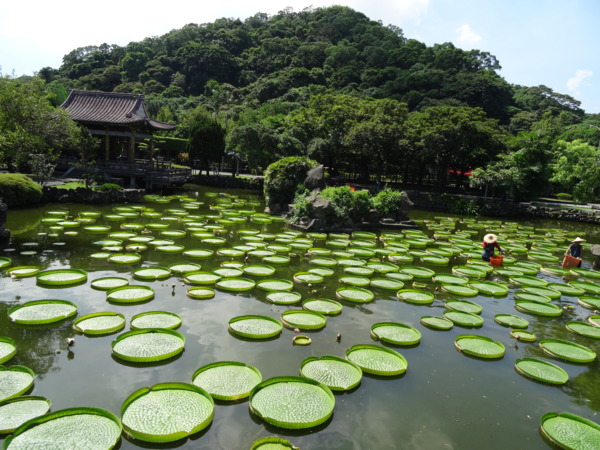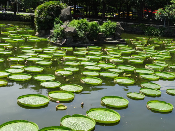 去年的大王蓮,現跡在雙溪公園吸引不少人群觀賞.今早路過雙溪公園,大王蓮果然再現身,比去年更大朵且數量更豐富,令人驚豔!!大王蓮之所以稱大王,乃因其葉大足以稱王,原生於南美洲,表面亮麗,水面下株體長滿粗刺,連花苞亦然.剛好有工作人員在整理池蓮,讓我們能欣賞更美麗的大王蓮,真感謝他們!!