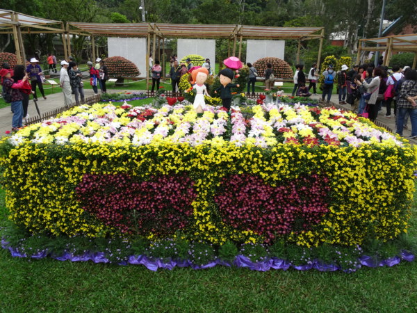 從花材裡變化出各種造型的花藝, 在台灣造型的菊花景旁站滿拍照的人們,想必是來自對岸的人們要留下到台灣遊玩的畫面,匠心獨具的花藝展現出菊花的特殊美感,本次展題為<愛耀菊時>配合2014愛你一世的熱潮,特別以菊來傳情,藉由菊來表達心中的愛意與敬意.讓我們來感受菊的美與靜!!