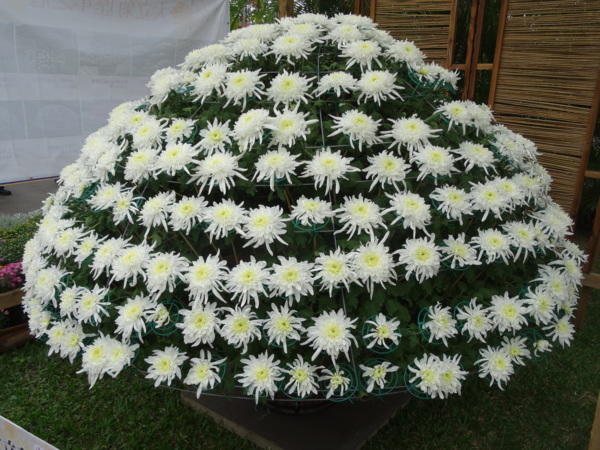 士林官邸的菊花展, 最大特色就是大立菊與碩大的壽菊,初見到這美麗的花朵令人驚豔又驚訝,顏色多彩又超大朵;看到大立菊令人驚呼連連,一株竟能開出上百上千朵花,令人稱奇!花色純白宛如瑞雪,金色.紅色.黃色.綠色滿園繽紛色彩,讓人目不暇給.
