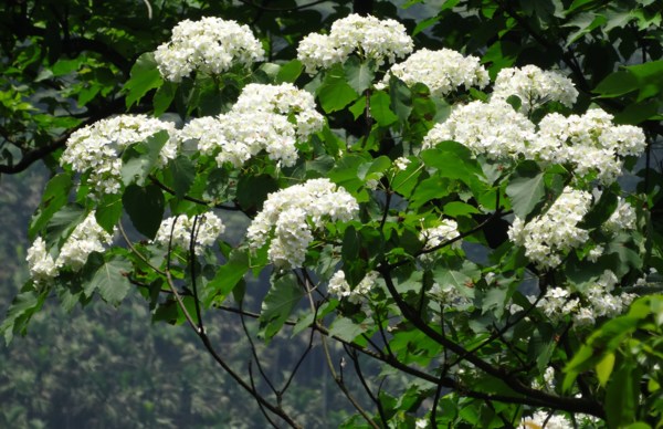 五月雪---桐花,美在潔白高雅,開滿山頭把青色山群披上白雪,山谷如同下雪般白了山頭.這是第一次見到如此壯觀的白色瑰麗山景,真是美妙極了!站在承天禪寺右邊的平台往四周張望,雪白美景處處可見.