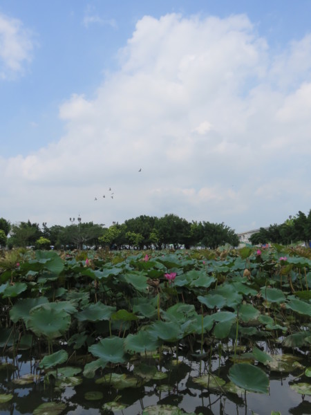 十月殘荷花正開 (越過長長河堤來到三重水漾公園蓮花池)