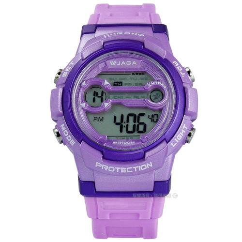 JAGA 捷卡 / M1126-J / 搶眼青春活力電子運動橡膠手錶 紫色 39mm 推薦