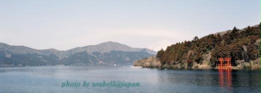 ■搭海盜船遊蘆之湖,遠方白皚皚的富士山,藏在薄霧中,若隱若現。