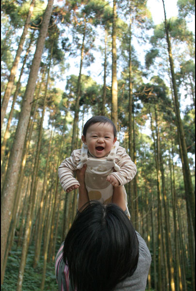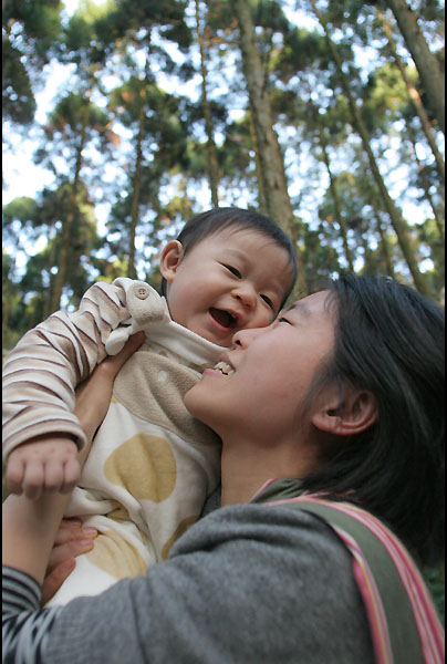 愛撒嬌,會爬到把拔馬麻身上趴著微微笑