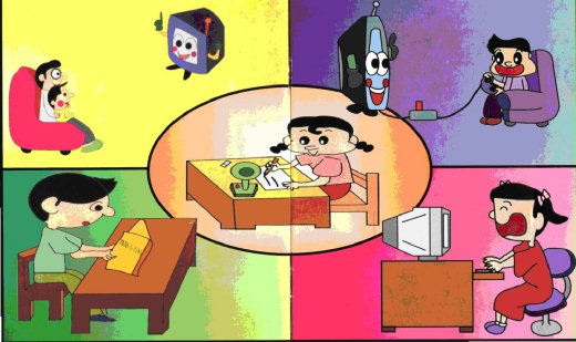 ◎看書姿勢要坐正,不可彎腰駝背或趴在桌上。