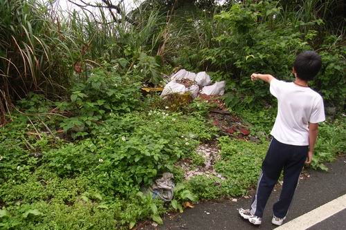 就在通過學校向上前進的時候,這才發現,在大峽谷的兩旁,竟然有許多不肖商人在這裡傾倒建築廢棄物,真的很沒有公德心。小朋友問老師:「他們怎麼會把垃圾丟在這裡?」老師想了很久,不知道應該如何回答小朋友。因為這些是最不良的示範,只能告訴他們:「因為有這樣不良的行為,所以我們應該更要求自己千萬不要作這些事情。不要因為自己一時的方便,違背自己的良心並且造成環境髒亂。」
