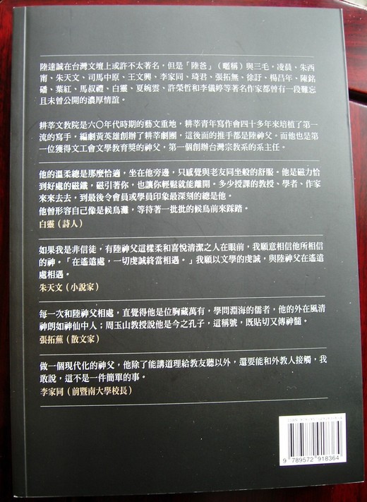老實說,當耕莘的老會員們,找我去討論陸神父的口述歷史這本書的前置作業時,我有點納悶,因為以前幫中央研究院編排的「口述歷史」,都是一本書訪問十幾個人,談論同一段歷史,如二二八事件。如果以陸爸為主角,應該稱為自傳或回憶錄。而且我以為陸爸只做過寫作會會長和宗教系主任兼哲學系教授這三種工作,而且身為神父須遵守很多戒律,寫出來的自傳應該很枯燥沉悶吧?