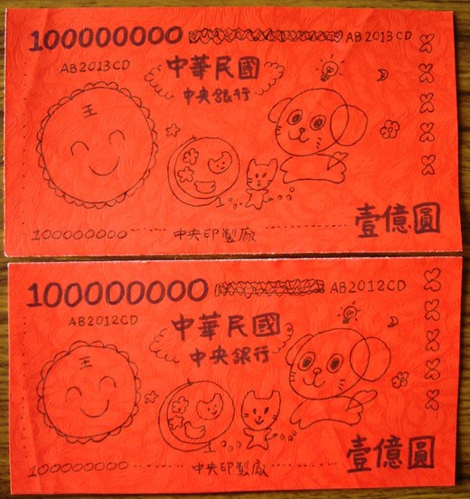 圖三:妹妹畫給爸的兩億元紅包(幻想是超級有錢人)