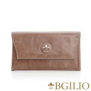 【義大利BGilio】蠟感裂紋牛皮西式信封長夾灰色(1944.328A-19)