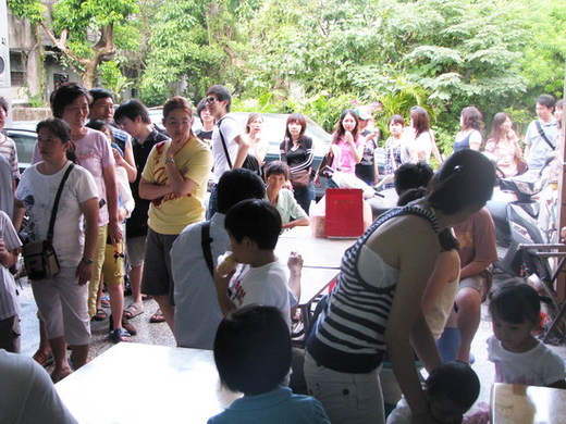 由張校長「報路」,我們開到一家沒有招牌的店面,居然人山人海。挖塞,吃碗冰還要排那麼久,天氣又超熱、我心想真的要暈眩。