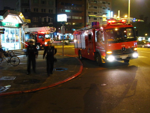 消防隊員找很久,都找不到火源,於是警方要求兵分兩路,到兩棟大樓每一層去檢查。我們大樓只有我在下面,所以我陪警方一層ㄧ層檢查,順便叫醒住戶。