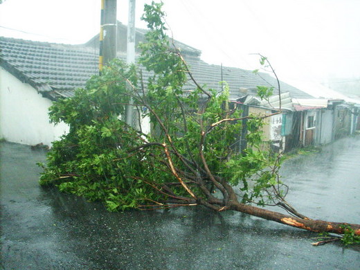 Msn聊到一半,他突然驚呼,原來他家門口被吹來一棵大樹,讓他嚇死。他媽跟他說..到了四點多開始下雨..隨即..強風加狂雨..。他要傳影片給我,可惜傳到快一小時,最後還是中斷了..